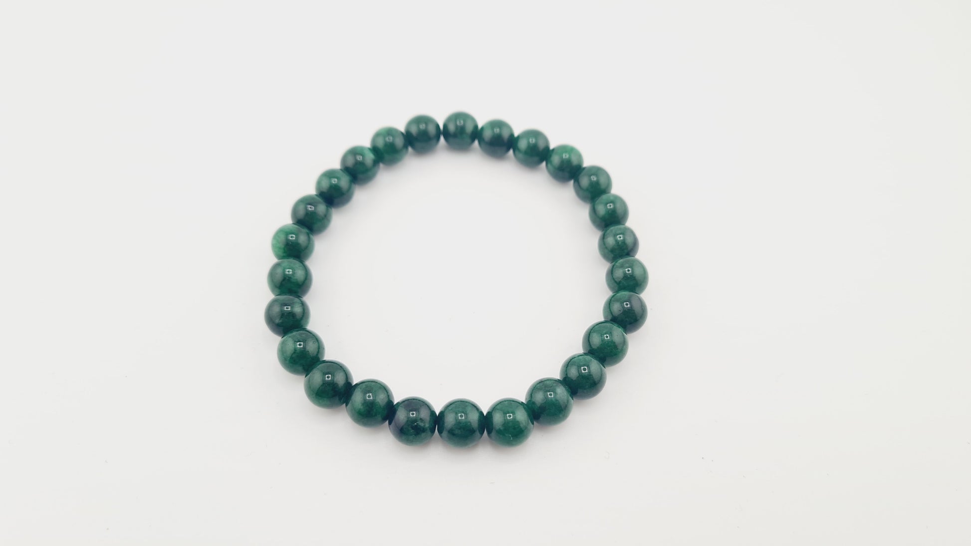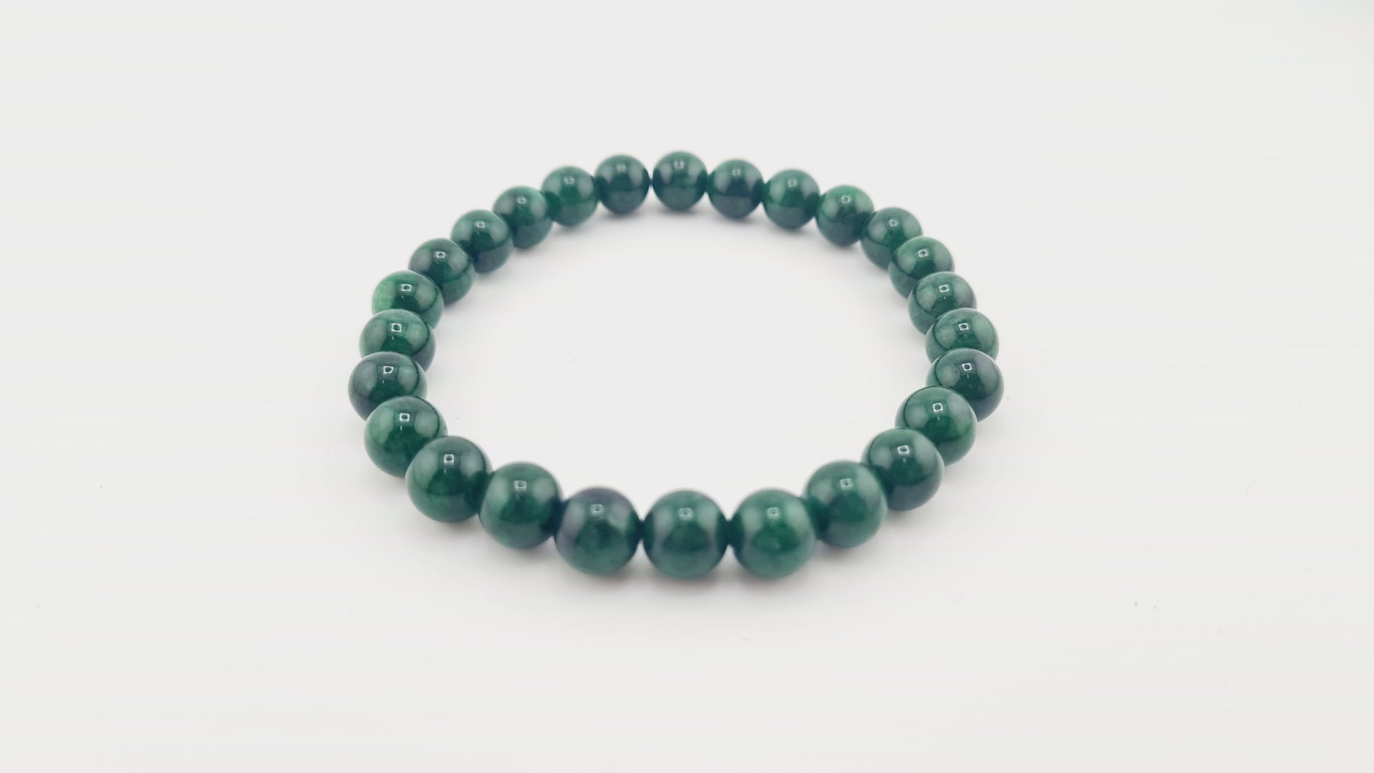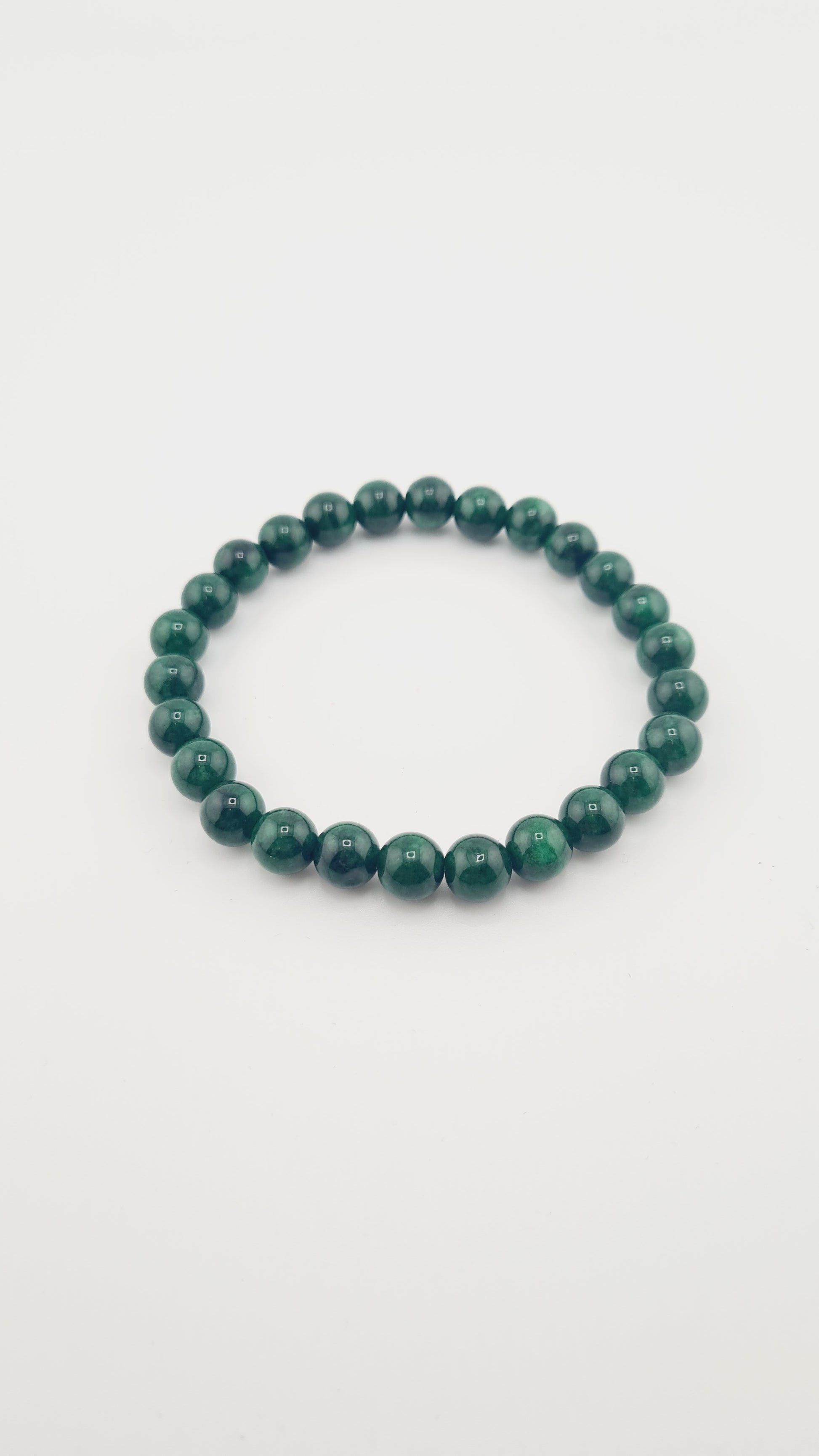 Bracelet en jade néphrite de Chine de 17.6cm de longeur (22 perles de 8mm) ou 20.8cm de longueur (26 perles de 8mm) / fil élastique.