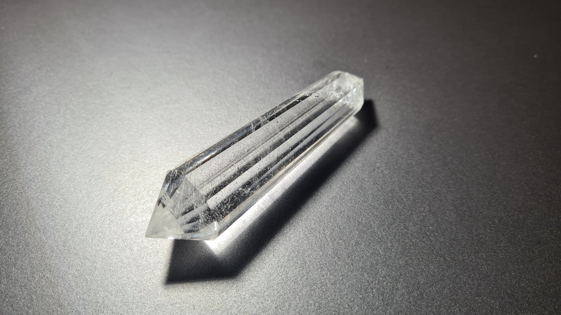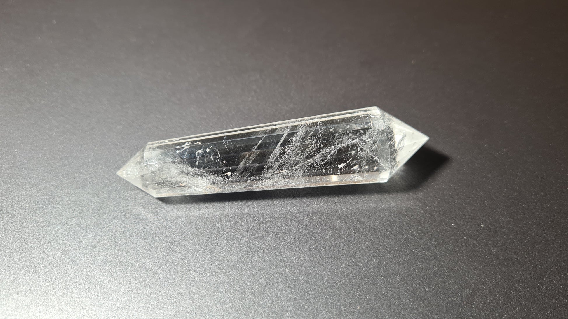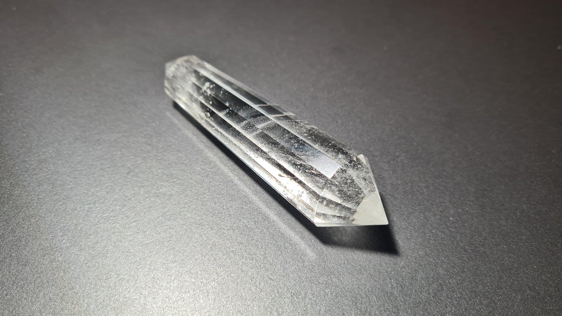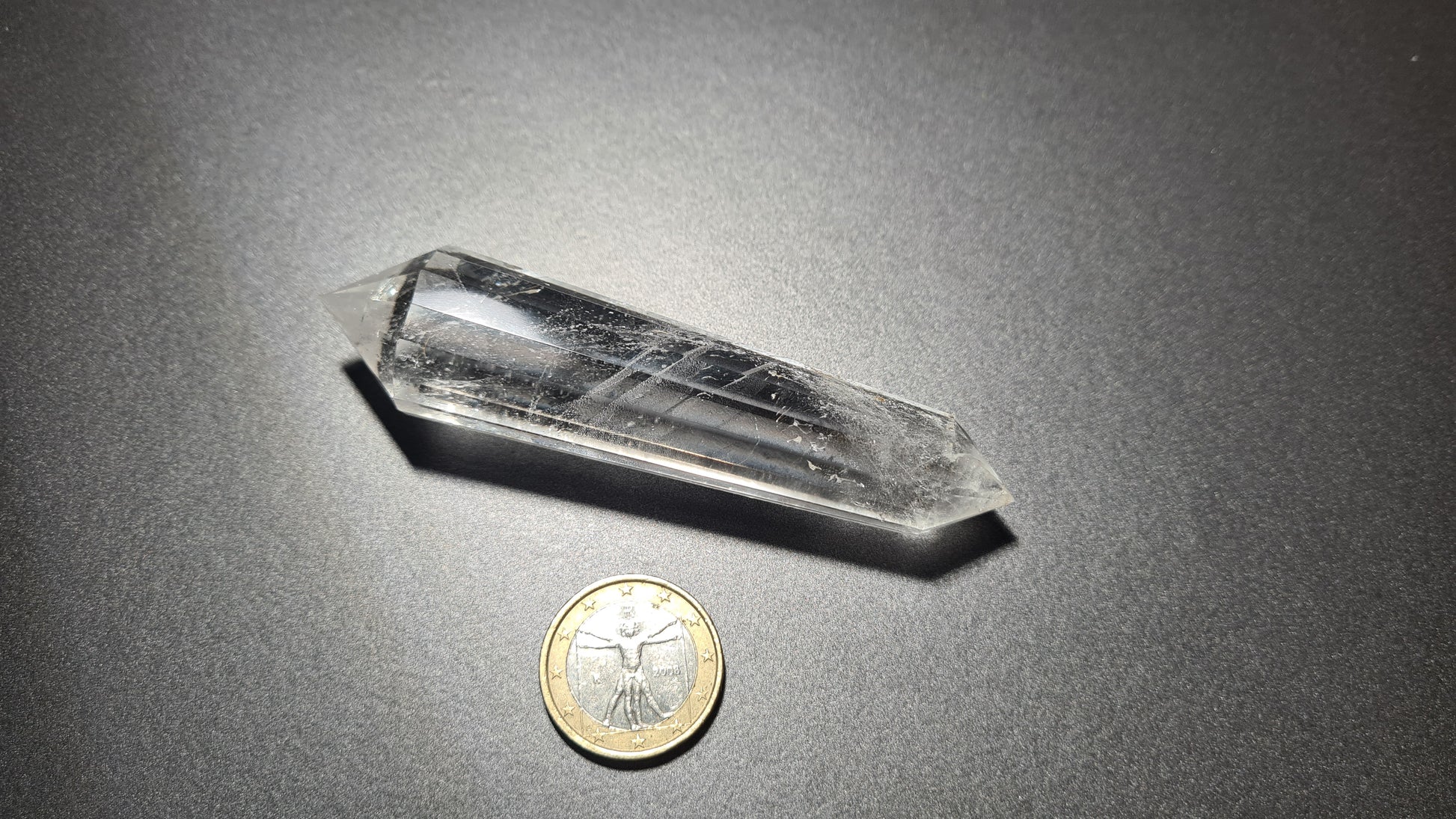 Cristal de quartz biterminé taillé façon Vogel avec 16 facettes - 9.5 x 2.2 cm - 64g