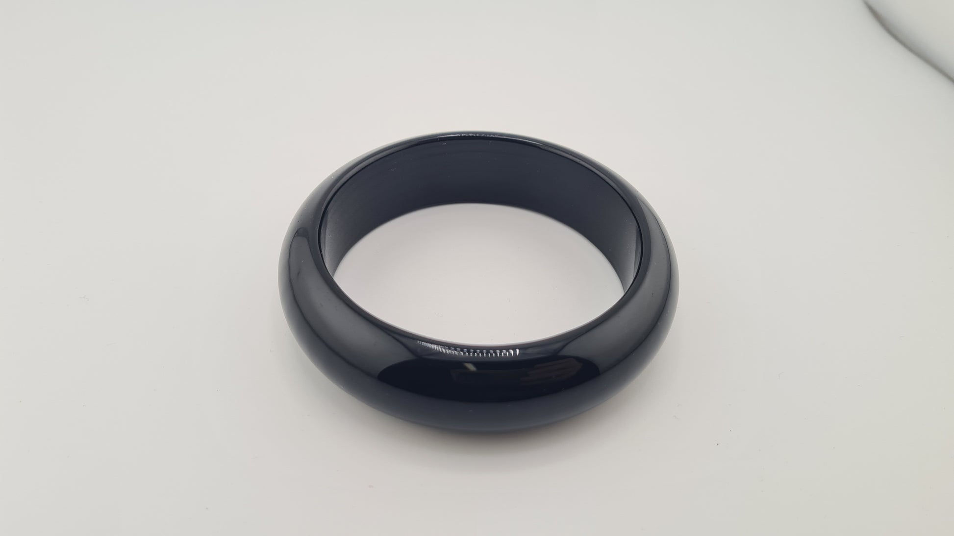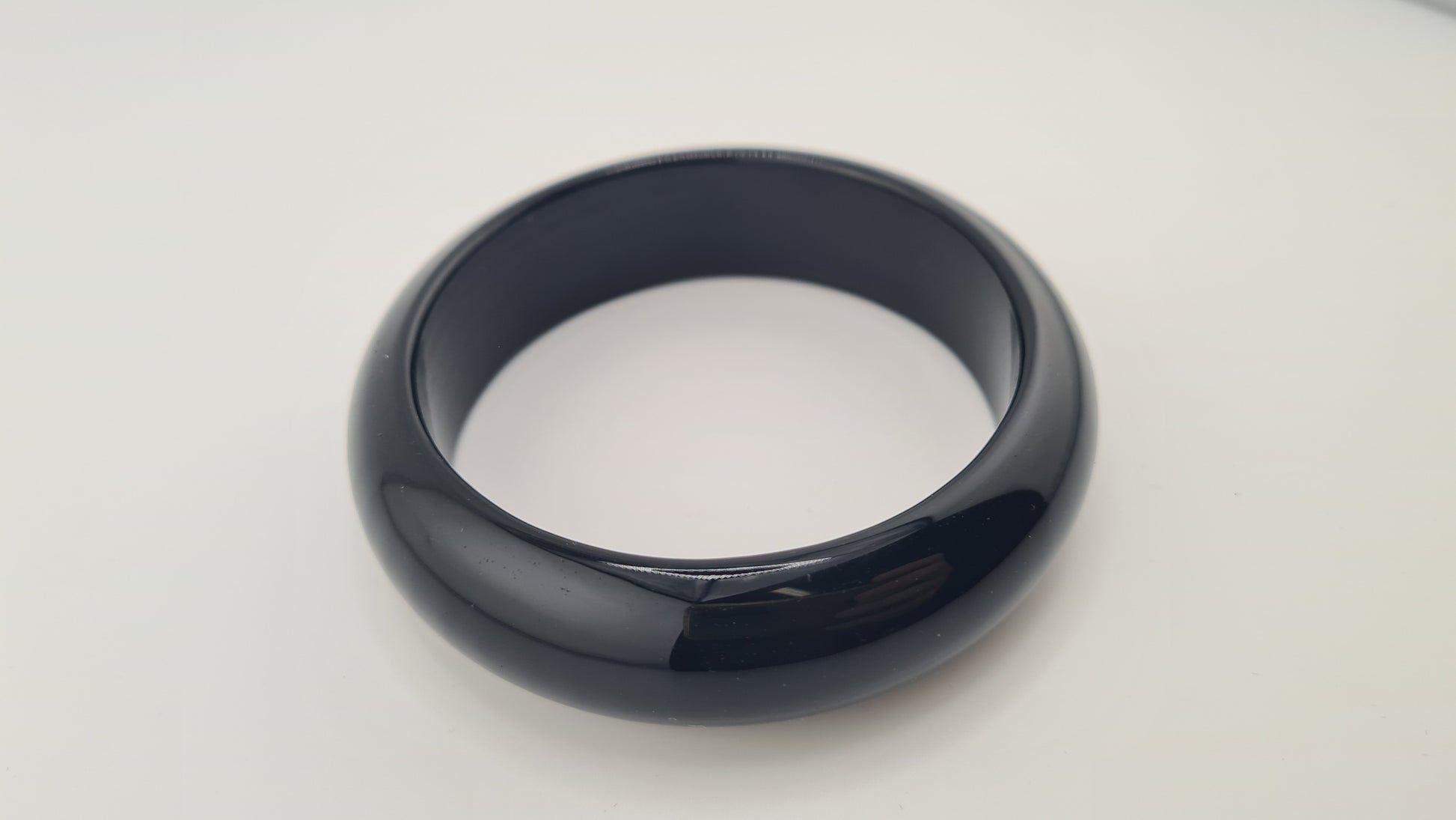 Bracelet massif en obsidienne en taille unique (diamètre intérieur 70mm). Épaisseur 1cm, largeur 2,1cm, poids 105g.